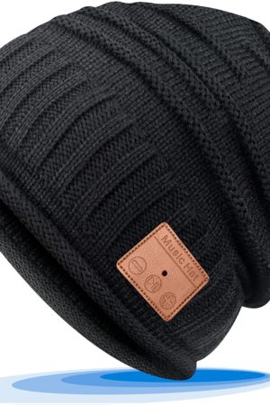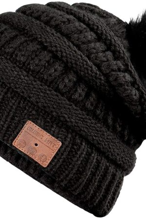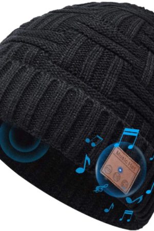 Wireless Music Hat, Knit Winter Warm Beanie w/Built-in Compatible with Bluetooth Stereo Headphone, Microphone for Hands-Free Calling - Black